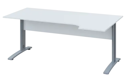 CRK 28 - 166 stůl kancelářský, rohový, pravý, kovová podnož stříbrná, deska 25 mm, široký 1600 mm, bílá