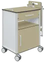 oboustranné noční stolky, zásuvka i skříňka jsou přístupné z přední i zadní strany, což umožňuje univerzální použití jak na levé, tak i pravé straně lůžka, vyrobeny z HPL, která vyniká vysokou odolností proti mechanickému poškození a snadnou údržbou