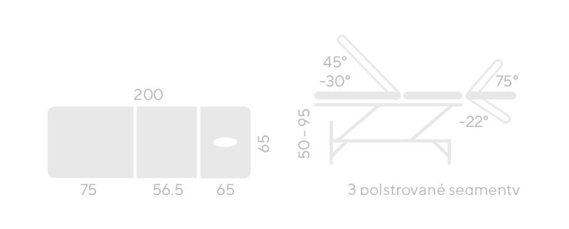 3-segmentové lehátko s elektrickým nastavením výšky, nastavitelný nožní a hlavový díl, komfortní matrace opatřená koženkou nejvyšší kvality