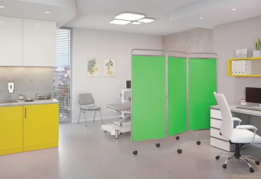 zástěny s plastovou omyvatelnou výplní, možnost polohovaní jednotlivých dílů, celonerezový trubkový rám